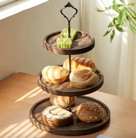 Keywords:Wooden cake stand, Rustic cake display, Handmade dessert stand