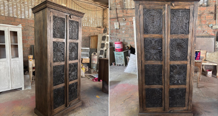 ตู้เสื้อผ้าไม้เนื้อแข็งสไตล์วินเทจทำมือ ประตูแบบหรูหราสไตล์ฝรั่งเศสโบราณ สำหรับห้องนั่งเล่น ขนาดสั่งทำได้