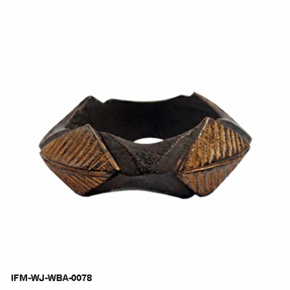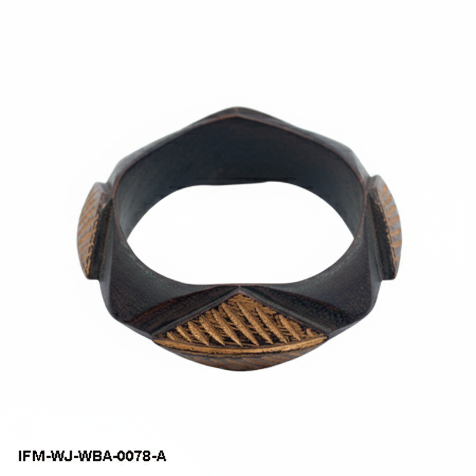 กำไลไม้แกะสลักลายเรขาคณิตสไตล์วินเทจ งานแฮนด์เมด ดีไซน์โบราณ กำไลไม้หนา เครื่องประดับสไตล์ชนเผ่าสำหรับผู้หญิง