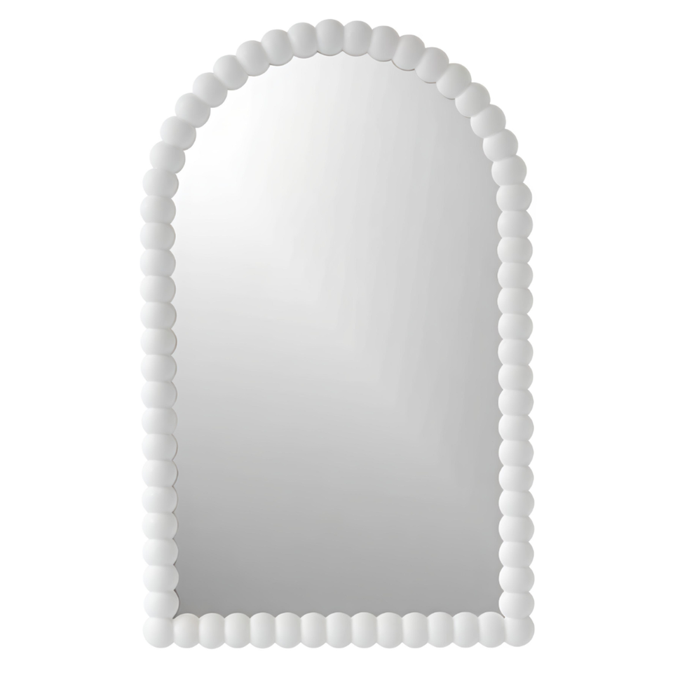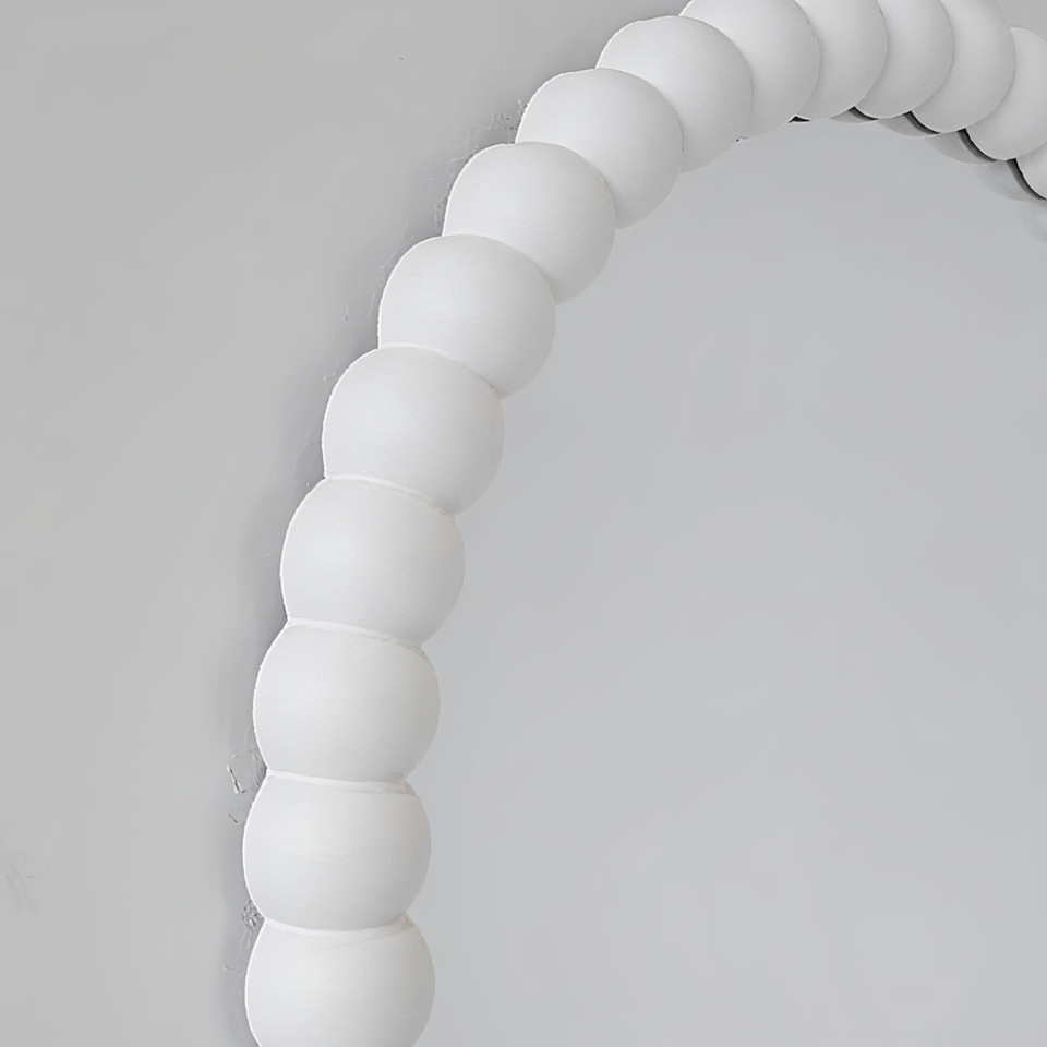 กรอบกระจกติดผนังงานแกะสลักไม้สุดหรู พร้อมกรอบ MDF ครึ่งวงกลมสีขาวตกแต่ง ดีไซน์ทันสมัย เหมาะสำหรับตกแต่งห้องนั่งเล่น