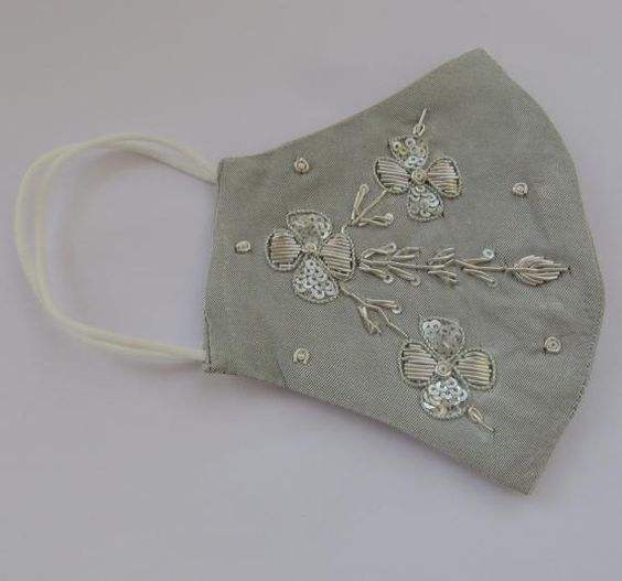 หน้ากากแต่งงานทำมือพร้อมปักลายดอกไม้และประดับด้วยลูกปัดหน้ากากแฮนด์เมดสไตล์ลำลองสำหรับเจ้าสาว