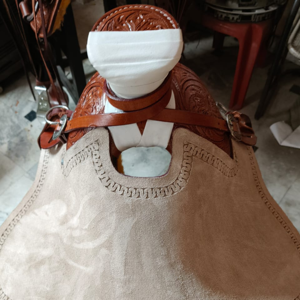 อานม้าหนังแท้สไตล์ตะวันตกทำมือ | เบาะนั่งแบบรูชูท ขนาด 16 นิ้ว | อานม้าลายดอกไม้สไตล์รันช์ | 2026 พรีเมียม โปร แม็กซ์