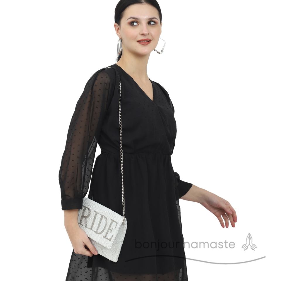 คลัทช์มือสีขาวสำหรับเจ้าสาวงานลูกปัดปักลายดอกไม้แบบแอบสแตรกต์ตะขอแม่เหล็กสำหรับงานแต่งงาน