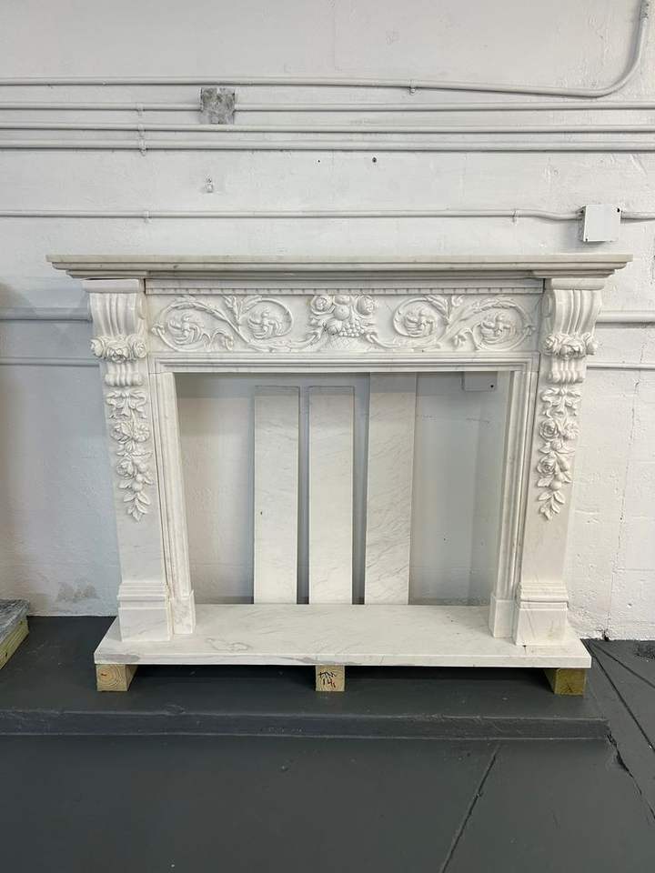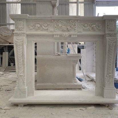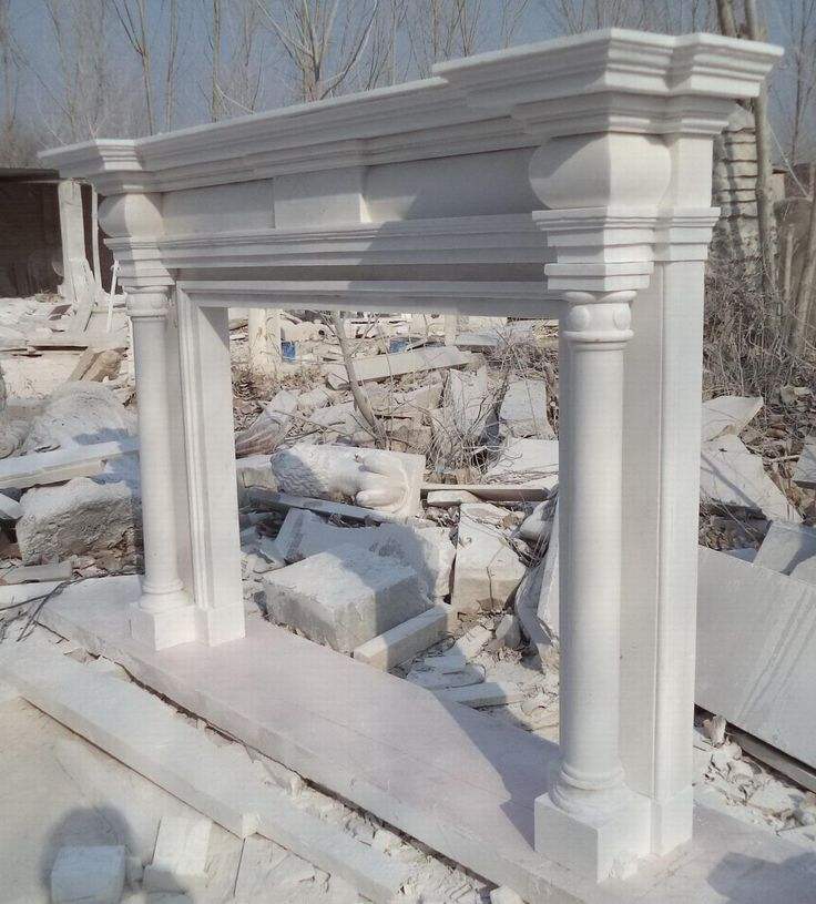 กรอบเตาผิงหินอ่อนสีขาวทำมือ ดีไซน์โมเดิร์นคลาสสิก พร้อมเสาค้ำแบบตั้งพื้น ขนาดสั่งทำได้ สำหรับตกแต่งภายใน HAYAT
