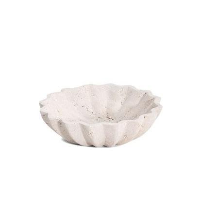 ชามหินอ่อนสีขาวแกะสลักลายดอกไม้แบบมีขอบหยัก สำหรับตกแต่งโต๊ะอาหารอย่างหรูหรา สามารถปรับแต่งได้