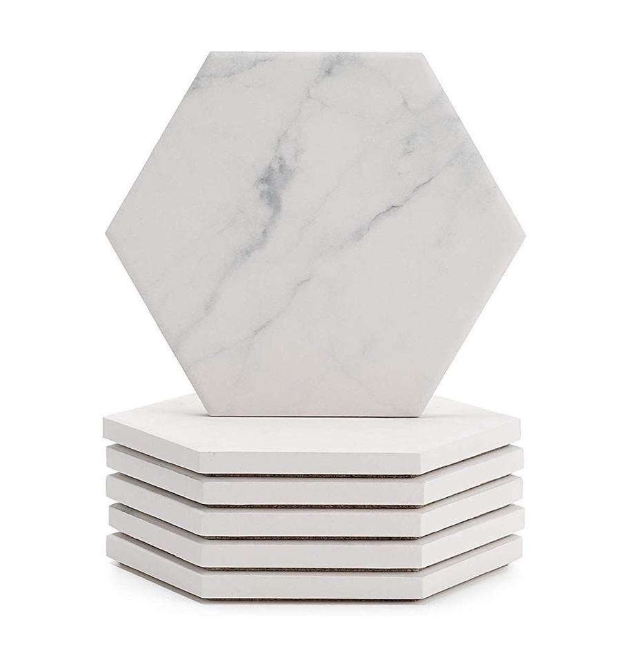 ที่รองแก้วชาหินอ่อนสีขาวทำมือแผ่นรองบนโต๊ะดีไซน์คลาสสิกแผ่นรองแก้วกาแฟทำมือแบบใหม่