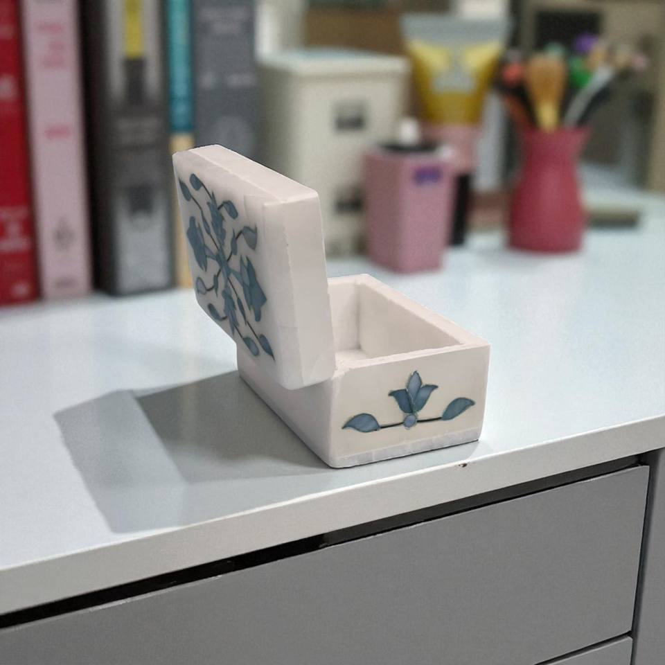 กล่องเครื่องประดับทรงสี่เหลี่ยมทำด้วยมือหินอ่อนสีขาว | ฝังดอกไม้ไข่มุกเปลือกหอยมุกสีฟ้า | กล่องพลอยเพียตราดูราหรูหรา