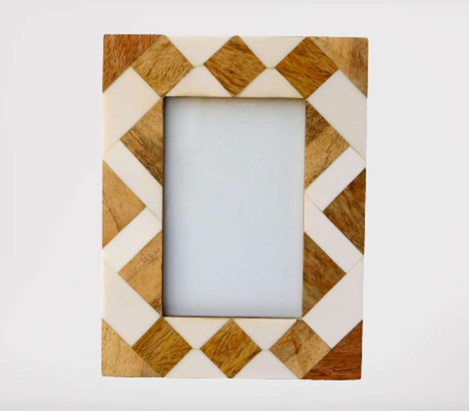 กรอบรูปไม้ทำมือฝังเรซิ่นสีขาว ลายเพชร ไม้มะม่วงธรรมชาติ สำหรับบ้านสไตล์เรียบหรู