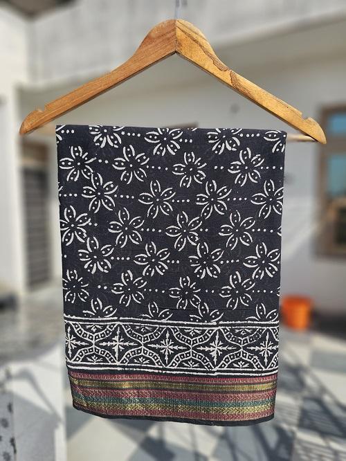 ผ้าโสร่งผ้าฝ้ายพิมพ์ลายบล็อกมืออินเดีย