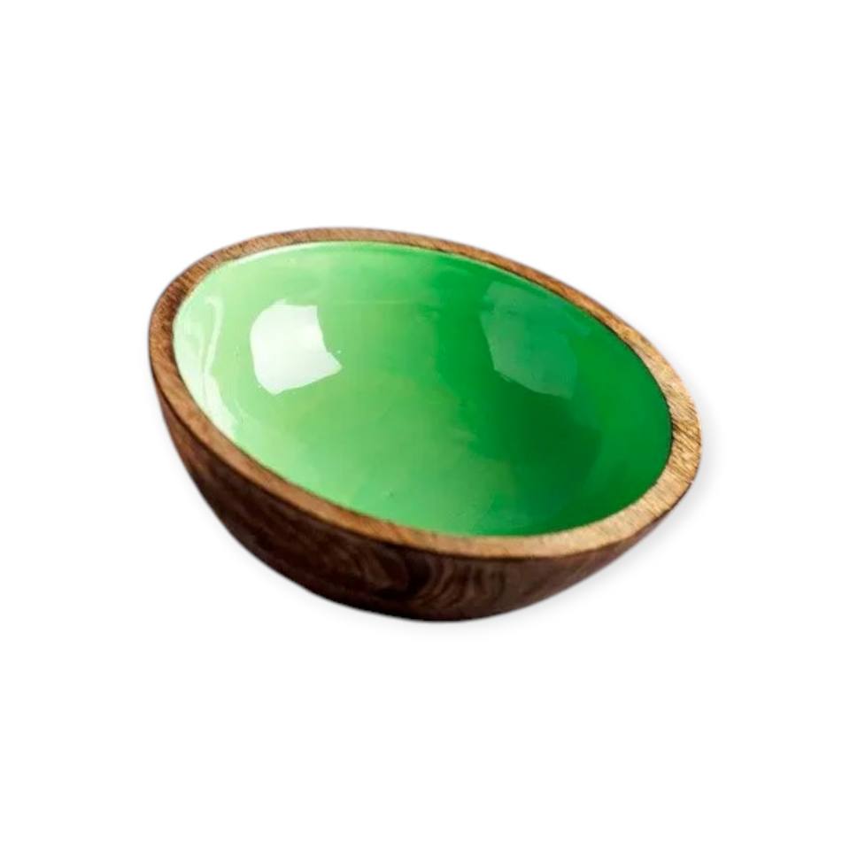 ชามไม้ทำมือพร้อมลวดลายใบไม้เขตร้อนเคลือบเงา สำหรับตกแต่งโต๊ะอาหารและบ้านให้ดูสดชื่น
