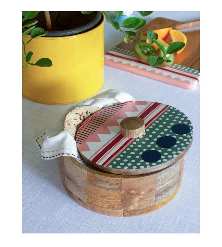 กล่องใส่ขนมปังไม้ทำมือพร้อมฝาปิดและที่คีบ ภาชนะเก็บโรตีคุณภาพพรีเมียมสำหรับห้องครัว ห้องรับประทานอาหาร และการเสิร์ฟ