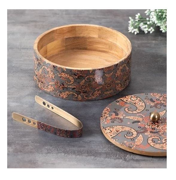 กล่องใส่ขนมปังไม้ทำมือพร้อมฝาปิดและที่คีบ ภาชนะเก็บโรตีคุณภาพพรีเมียมสำหรับห้องครัว ห้องรับประทานอาหาร และการเสิร์ฟ