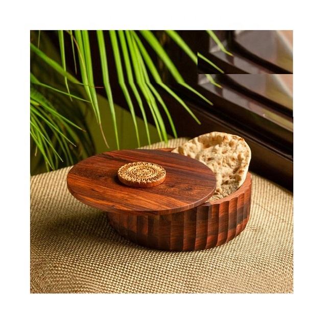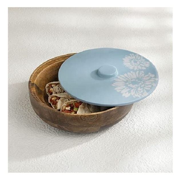 กล่องใส่ขนมปังไม้ทำมือพร้อมฝาปิดและที่คีบ ภาชนะเก็บโรตีคุณภาพพรีเมียมสำหรับห้องครัว ห้องรับประทานอาหาร และการเสิร์ฟ