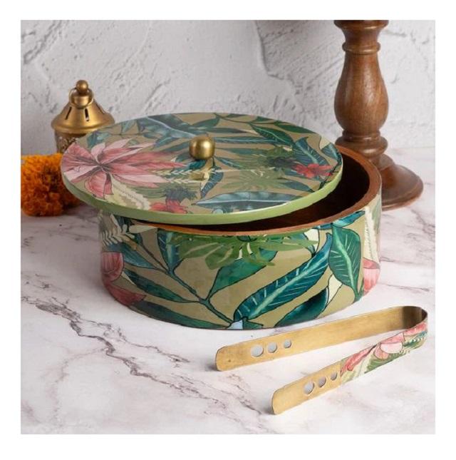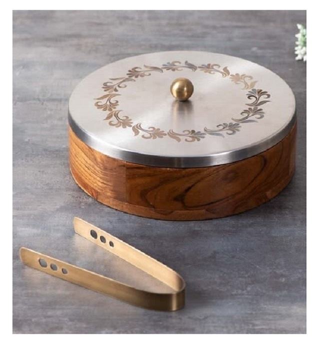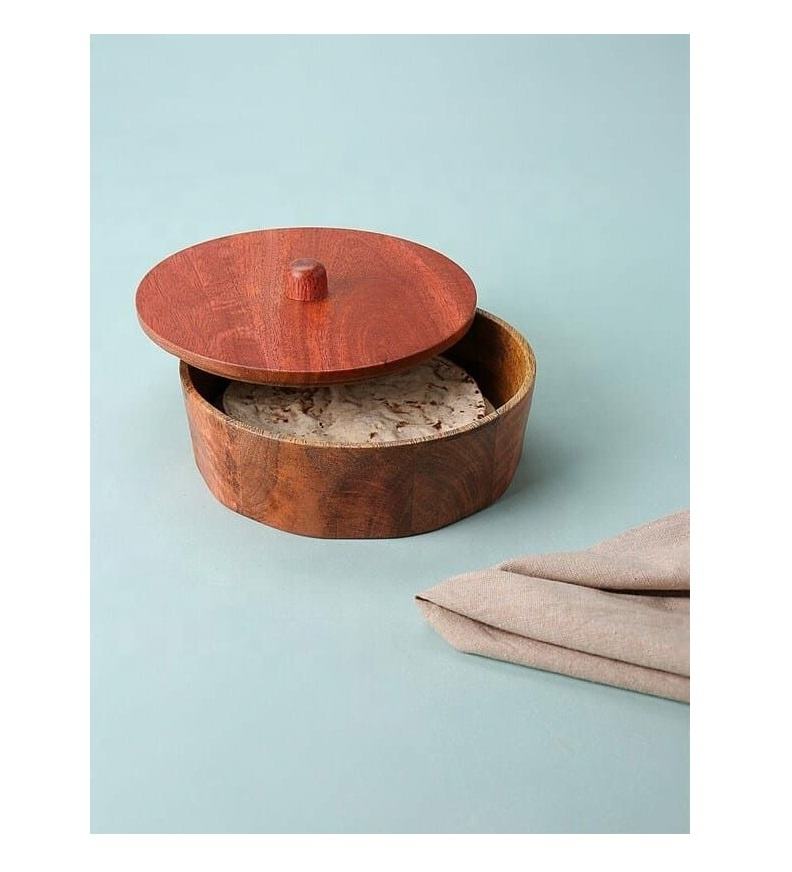 กล่องใส่ขนมปังไม้ทำมือพร้อมฝาปิดและที่คีบ ภาชนะเก็บโรตีคุณภาพพรีเมียมสำหรับห้องครัว ห้องรับประทานอาหาร และการเสิร์ฟ