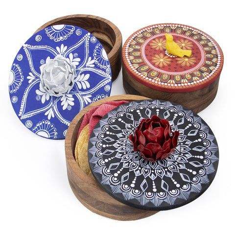 กล่องชาปาตีไม้ทำมือ พร้อมที่ใส่เครื่องเทศมาซาล่า