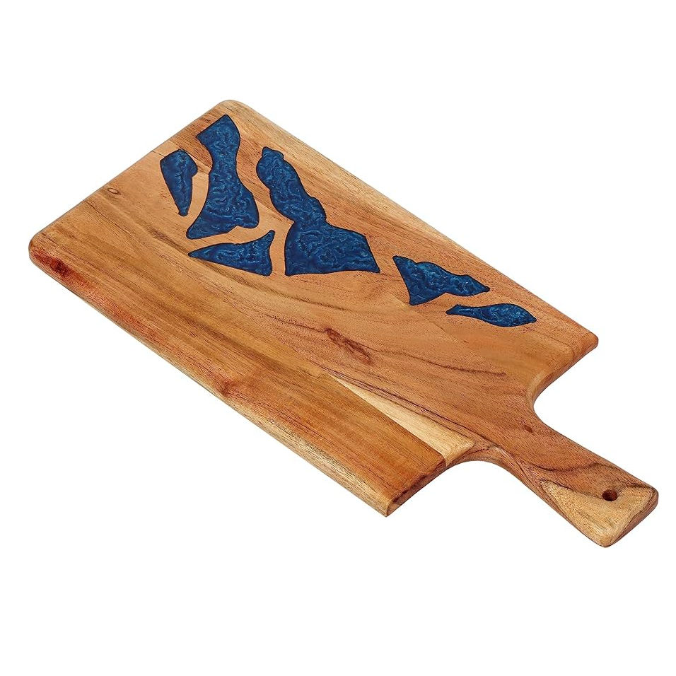 เขียงไม้ทำมือพร้อมลายเรซิ่นสีน้ำเงินสุดพิเศษ พื้นผิวไม้เนื้อแข็งทนทาน ด้ามจับมีสไตล์ เหมาะสำหรับใช้ในครัว