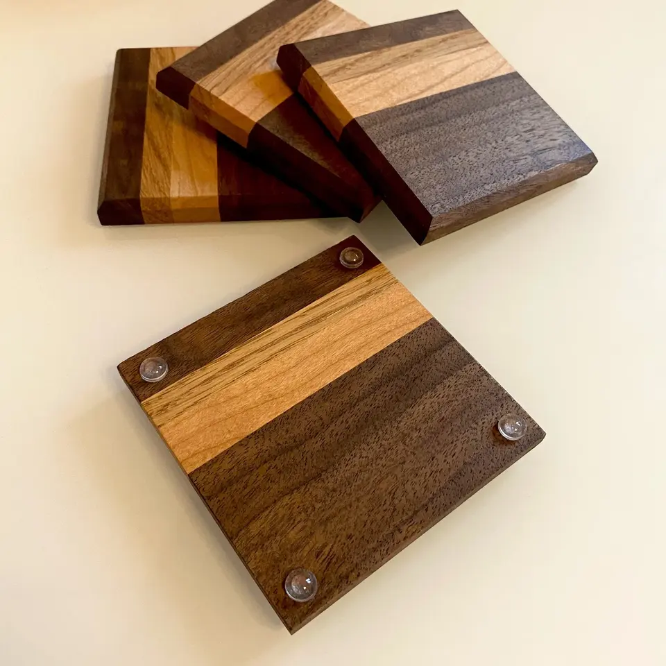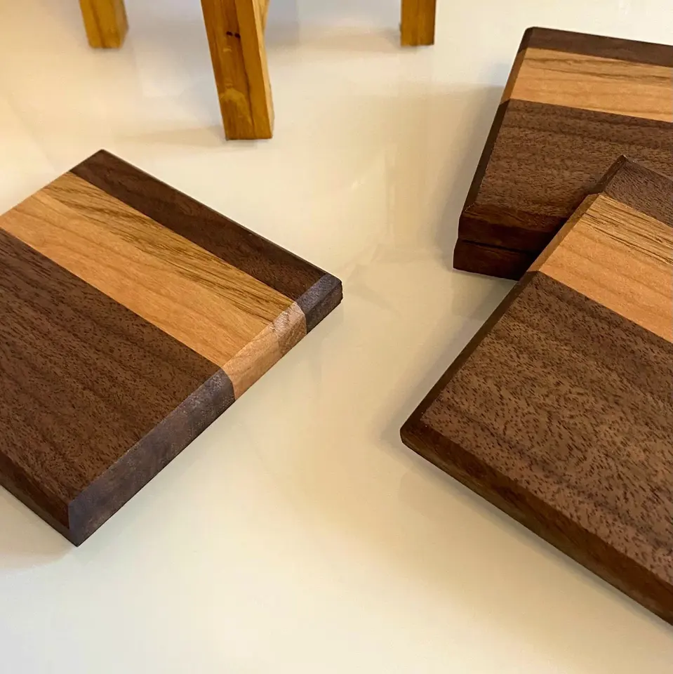 ที่รองแก้วไม้ทำด้วยมือสีดำเข้มที่รองแก้ววอลนัทและไม้เมเปิ้ลที่รองแก้วทรงสี่เหลี่ยมสำหรับตกแต่งบ้าน
