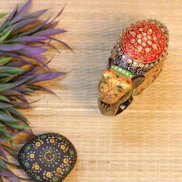 ช้างไม้สีสันสดใสประดับอัญมณี งานฝีมือ ตกแต่งบ้าน ของประดับโต๊ะ และของขวัญ