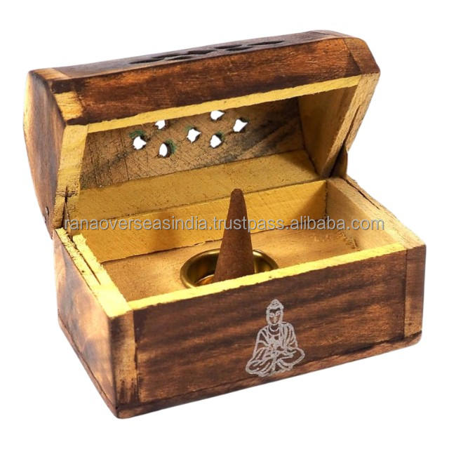 เตาเผาเครื่องหอมทรงกรวยไม้ทำมือ ลายพระพุทธรูป ของตกแต่งบ้านเพิ่มความหอมมีสไตล์