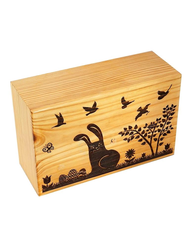 โกศเผาศพไม้ทํามือสําหรับเถ้ามนุษย์ผู้ใหญ่ขนาดใหญ่ - กล่องโกศศพต้นไม้แห่งชีวิต (250 ปอนด์ - กระต่ายไม้สน)