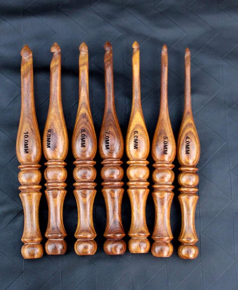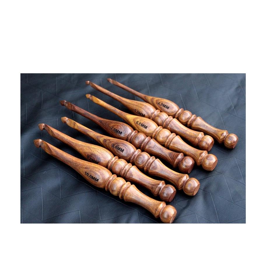 ชุดของขวัญที่ดีที่สุดชุด7ชิ้นตะขอถักด้วยมือไม้โรสวูดสีและขนาดตามสั่ง