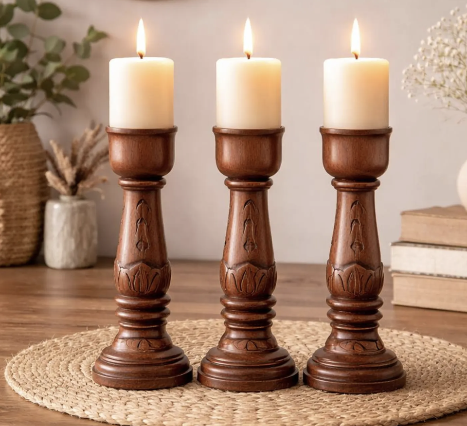 เชิงเทียนไม้รูปทรงเพชร งานแฮนด์เมด แกะสลักจากไม้เนื้อแข็งธรรมชาติ ของตกแต่งบ้านสำหรับคริสต์มาส ปรับแต่งได้