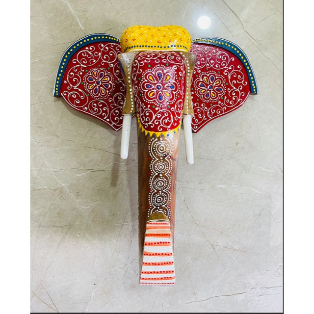 งานประติมากรรมหัวช้างไม้แกะสลักด้วยมือ ลายแนวตั้ง ดีไซน์แบบอาร์ตเดโค สำหรับตกแต่งงานดิวาลี วันเกิด งานแต่งงาน (แบบดั้งเดิม)