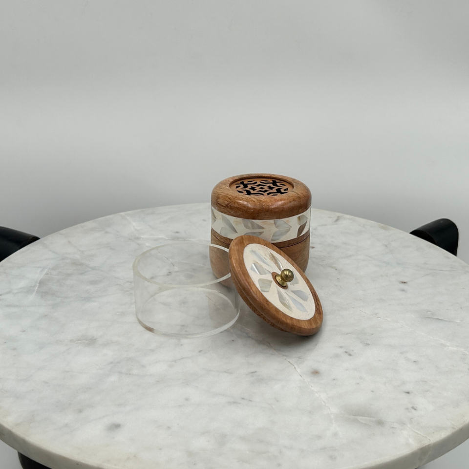 ชุดเตาเผาเครื่องหอมไม้ทำมือ พร้อมถาดฝังมุก ฝาปิดระบายอากาศ และขวดอะคริลิก สำหรับตกแต่งบ้านและทำสมาธิ