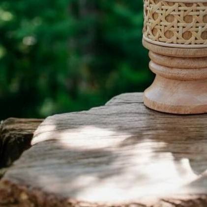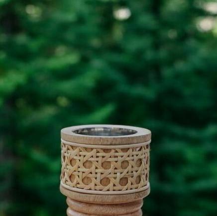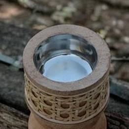 เตาเผาเครื่องหอมไม้ทำมือพร้อมถ้วยโลหะ ที่วางบาคูร์แบบดั้งเดิม ของตกแต่งบ้านสไตล์เรียบง่ายแบบธรรมชาติ เหมาะสำหรับเป็นของขวัญในเดือนรอมฎอน