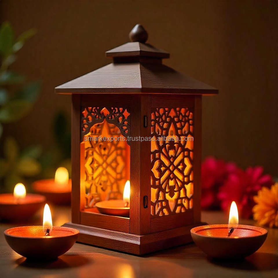 โคมไฟไม้แนวชนบทโคมไฟตัดด้วยมือหรูหราสำหรับงานเฉลิมฉลองเทศกาลดิวาลีและของตกแต่งบ้าน