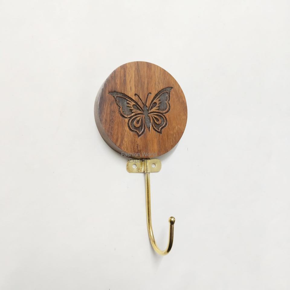 ตะขอแขวนผนังรูปหน้าเสือดาวทำจากไม้แกะสลักด้วยมือ ตะขอแขวนผนังรูปสัตว์ตกแต่ง ตะขอเดี่ยวไม้และทองเหลืองสไตล์เรียบง่ายสำหรับทางเข้าบ้าน