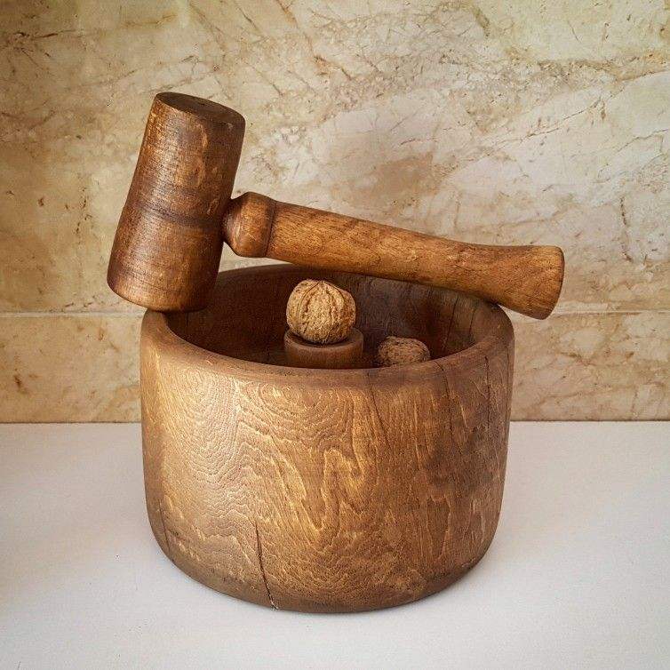 ชามไม้ทำมือสำหรับบดถั่ว พร้อมค้อน สำหรับวอลนัท อัลมอนด์ พีแคน เฮเซลนัท ของตกแต่งบ้านสไตล์เรียบง่ายสำหรับโต๊ะครัว