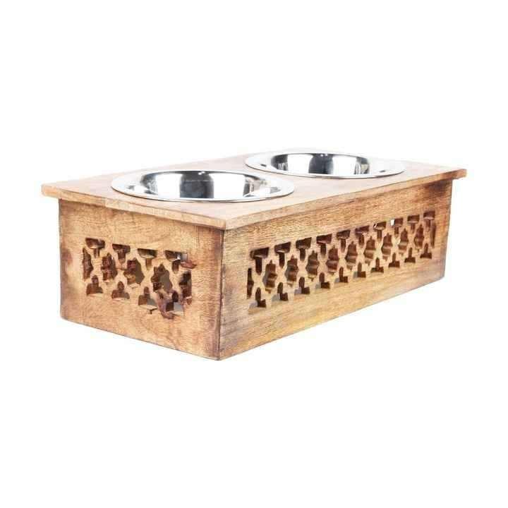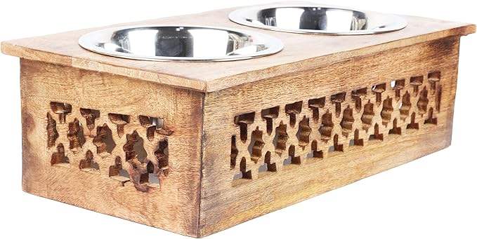 ชามไม้สำหรับสัตว์เลี้ยงทำด้วยมือชามให้อาหารสุนัขและแมวเป็นมิตรกับสิ่งแวดล้อมราคาไม่แพงเหมาะสำหรับใช้ในชีวิตประจำวันโดย World Craft Impex