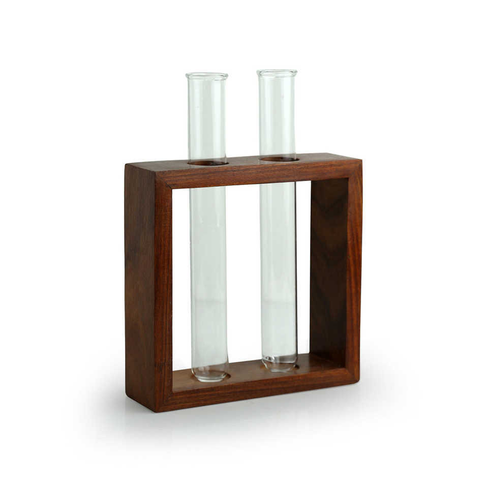 Material:PLANTER HOLDER: Sheesham Wood, PLANTER TUBE: Glass