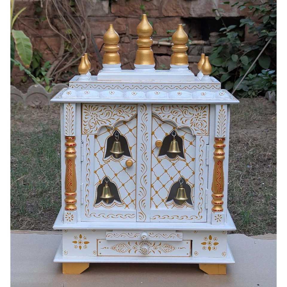 ตู้บูชาไม้ทำมือ ทนทาน รูปทรงสี่เหลี่ยมผืนผ้า สำหรับบูชาที่บ้าน วัด หรือสถานที่ศักดิ์สิทธิ์ในเทศกาลดีวาลี