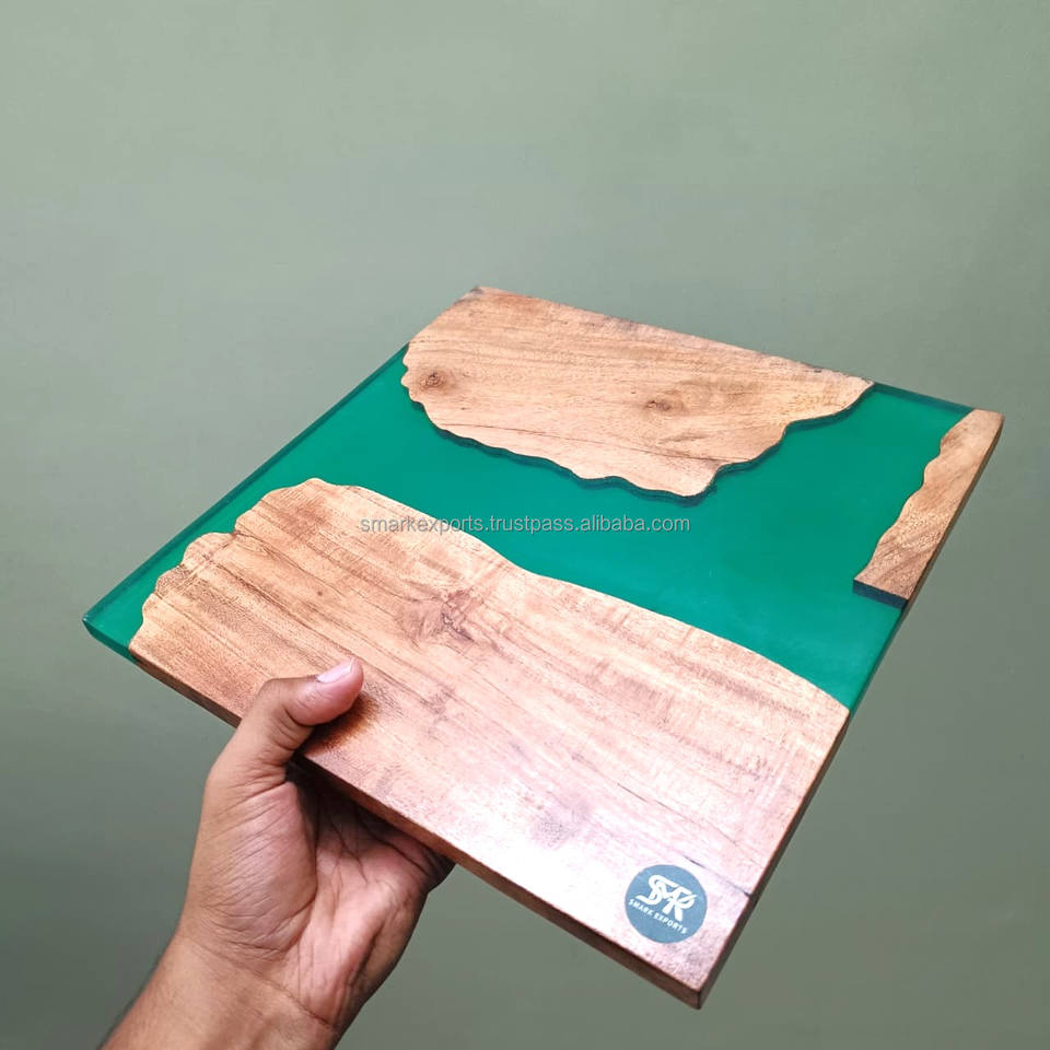กระดานไม้ทำด้วยมือเรซิ่นดีไซน์สี่เหลี่ยมที่ทันสมัยทนทานถาดเสิร์ฟของตกแต่งโต๊ะสำหรับบ้านห้องครัวและของขวัญ