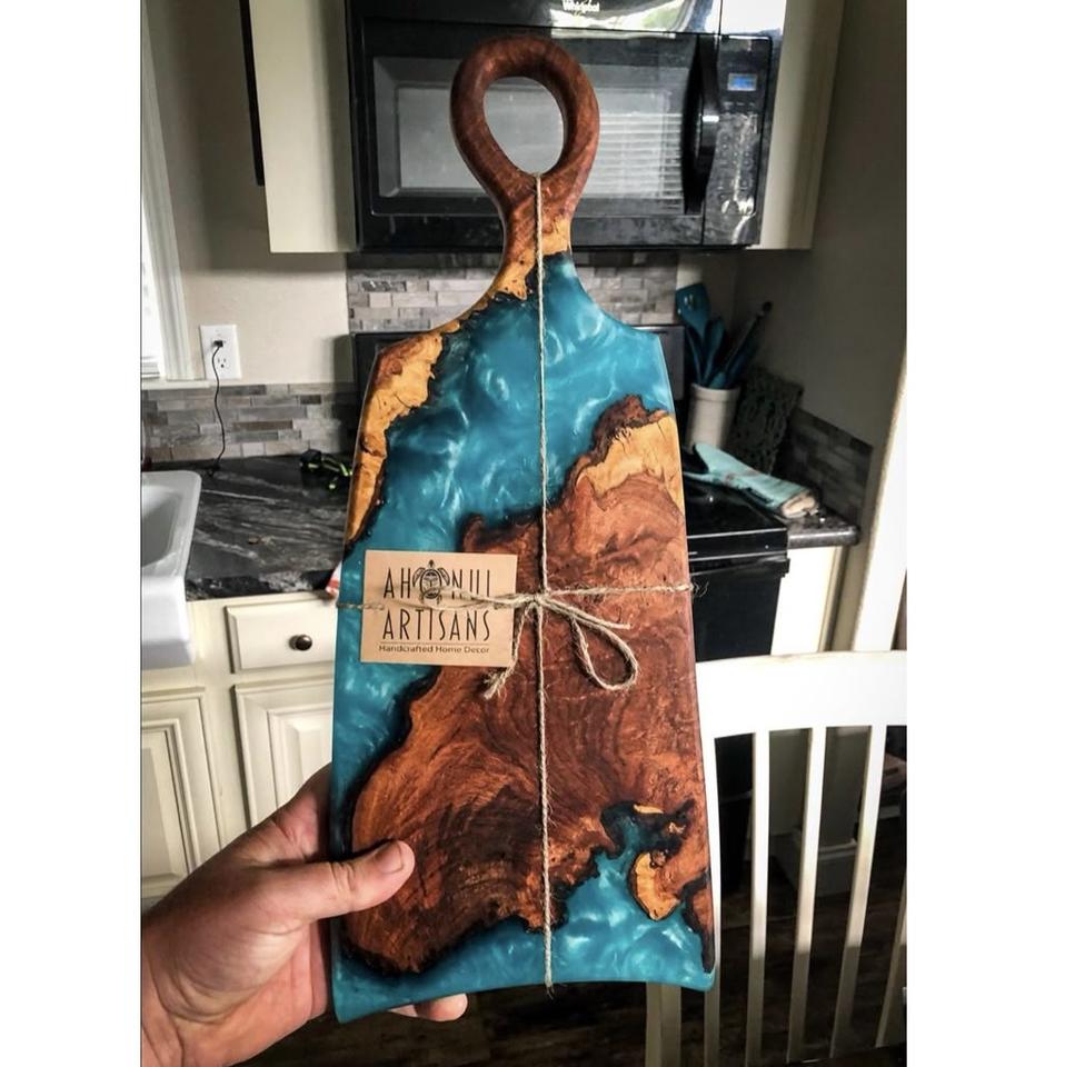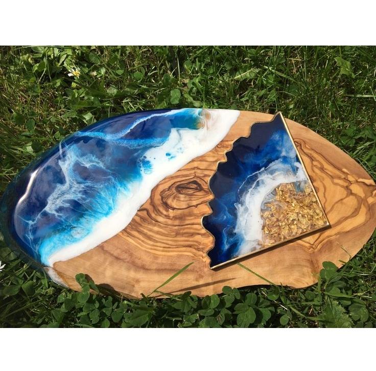 เขียงทำจากไม้เรซิ่นทำมือพร้อมด้วยหินอาเกตสุดหรู