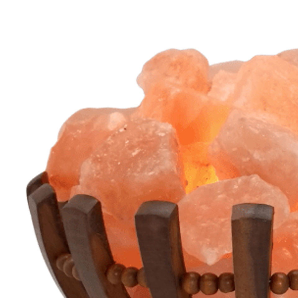 โคมไฟเกลือทำด้วยมือทำจากไม้พร้อมชิ้นเกลือหิมาลายันธรรมชาติสำหรับตกแต่งบ้านผลิตภัณฑ์หัตถกรรมจากธรรมชาติ
