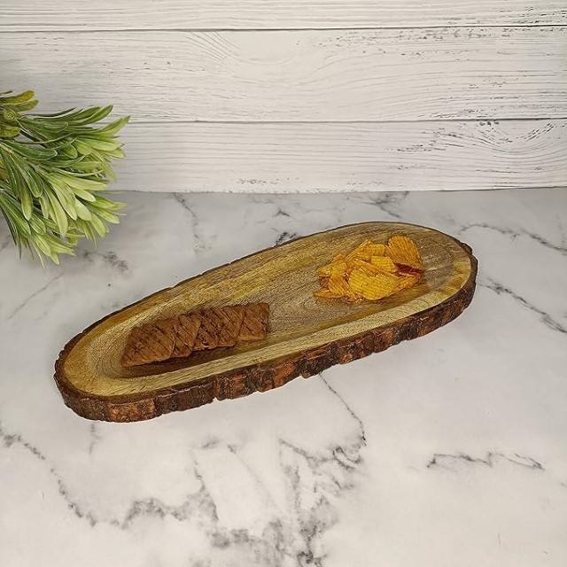 จานมะละกอทำด้วยมือสามารถอธิบายได้ว่าเป็นจานรูปไข่ยาวที่ทำจากไม้อะคาเซียธรรมชาติ