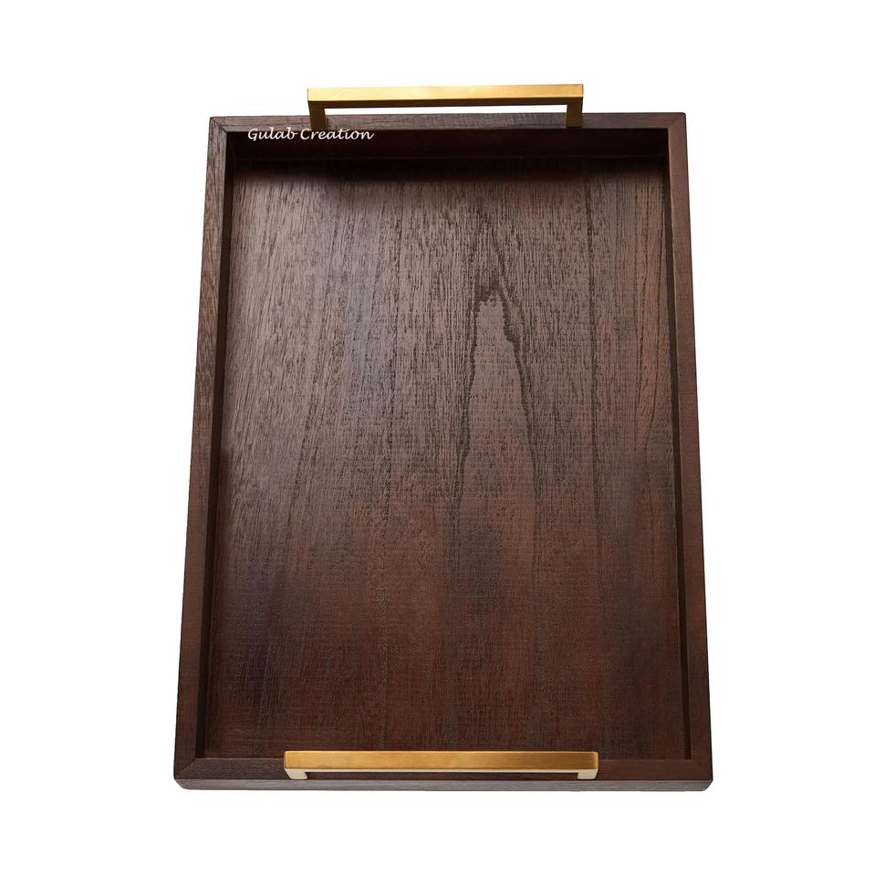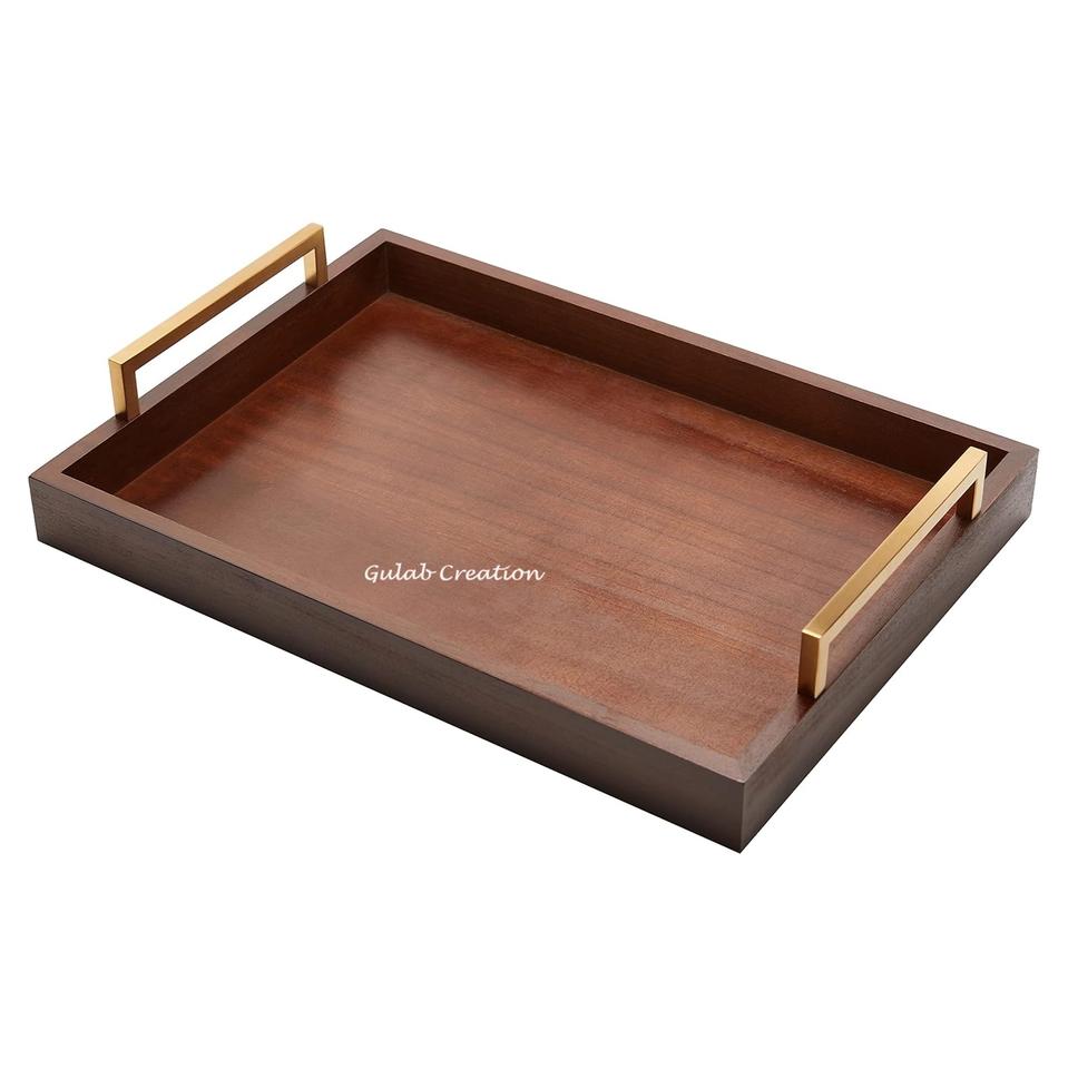ถาดเสิร์ฟไม้ทำด้วยมือพร้อมที่จับสีทองหรูหราถาดสี่เหลี่ยมสำหรับตกแต่งห้องครัวห้องรับประทานอาหารและของตกแต่งบ้าน