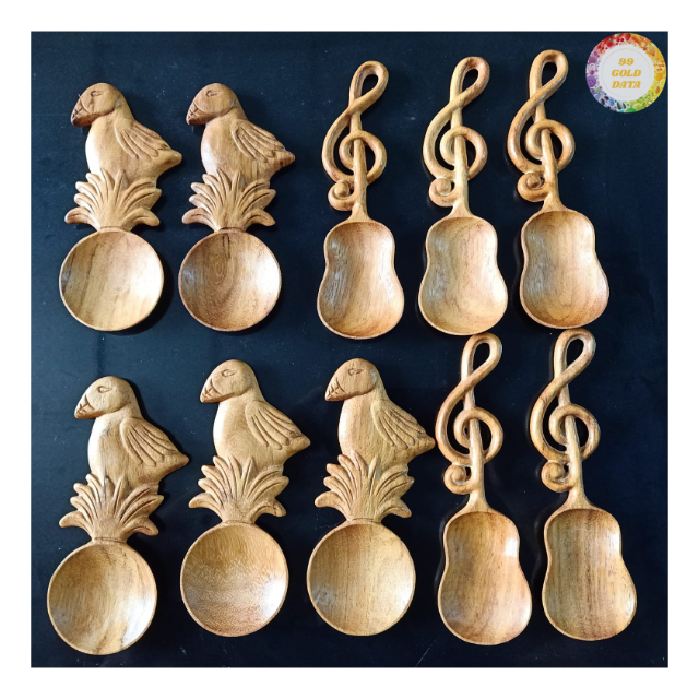 ช้อนไม้ทำมือพร้อมรูรูปหัวใจ ด้ามจับรูปใบไม้ - CARYLN