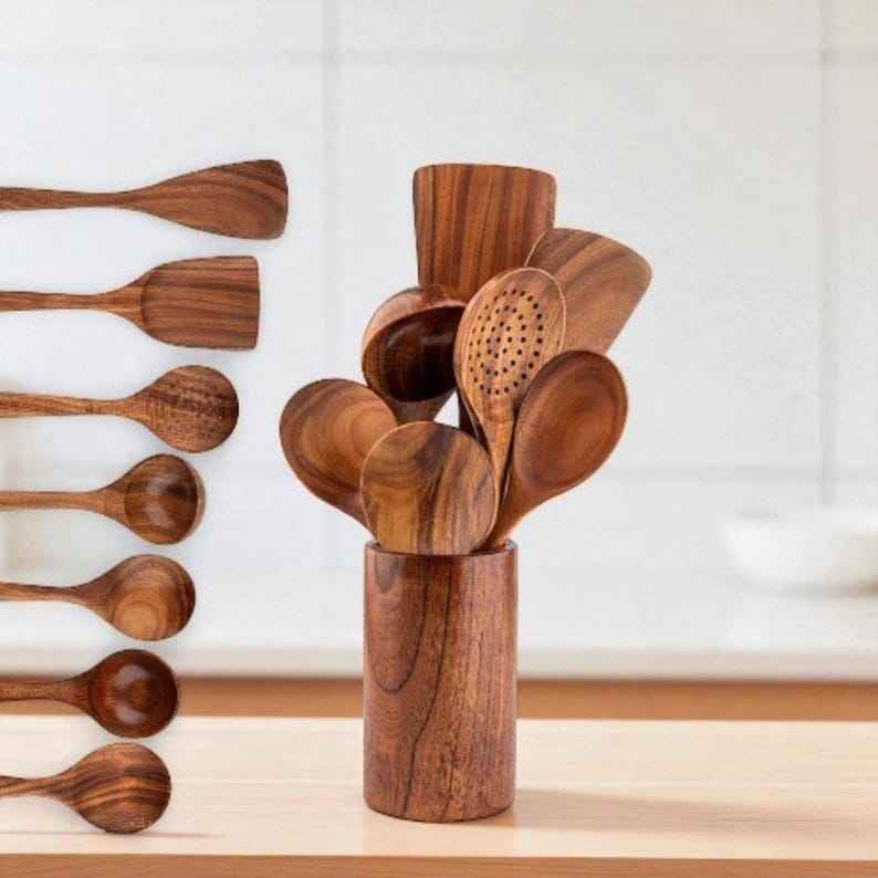 ช้อนไม้ทำด้วยมือพร้อมจี้หินอาเกตเครื่องใช้ในครัวที่หรูหราเป็นธรรมชาติสำหรับเสิร์ฟและทำอาหาร