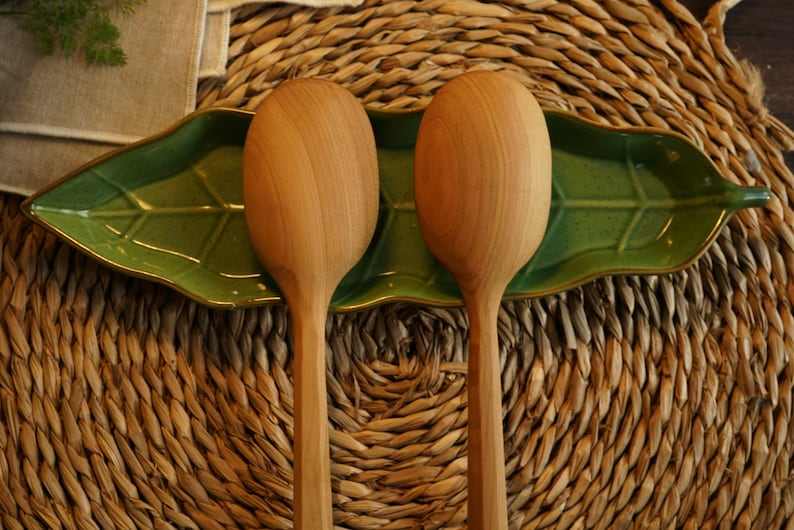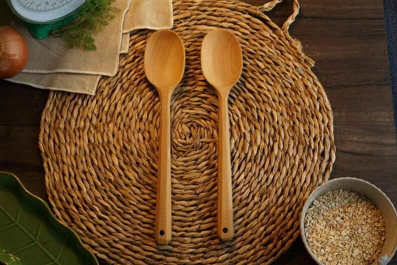 ช้อนไม้ทำมือสำหรับทำอาหารในครัว ใช้คน ผสม และเสิร์ฟ ผลิตจากไม้ธรรมชาติที่เป็นมิตรต่อสิ่งแวดล้อม สำหรับใช้ในชีวิตประจำวัน
