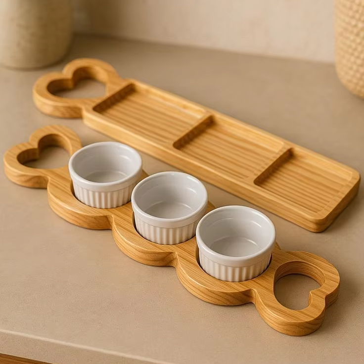 ถาดไม้ทำมือจากไม้เนื้อแข็งธรรมชาติ | จานเสิร์ฟอาหารปลอดภัยสำหรับใช้ในบ้าน ร้านกาแฟ ร้านอาหาร และบริการจัดเลี้ยง
