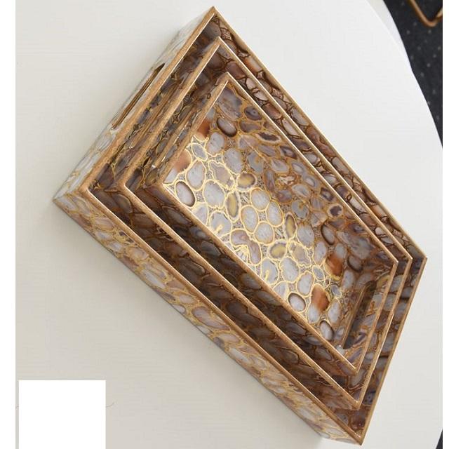 ชุดถาดไม้ทำมือ พิมพ์ลายเคลือบเงา พร้อมลายปั๊มฟอยล์สีทอง เหมาะสำหรับโต๊ะน้ำชา กาแฟ และถาดเสิร์ฟขนม