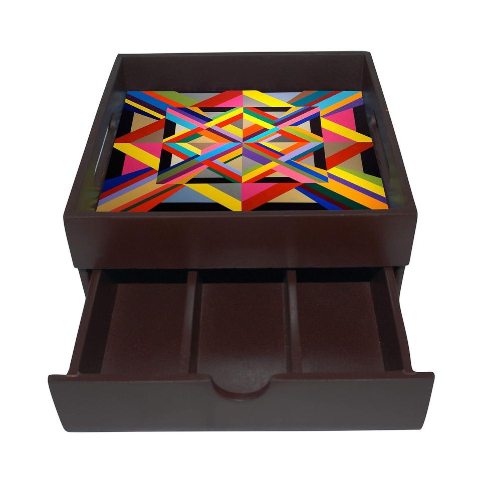 ถาดไม้ทำด้วยมือพร้อมลิ้นชักเก็บของโต๊ะที่จัดระเบียบอย่างมีสไตล์