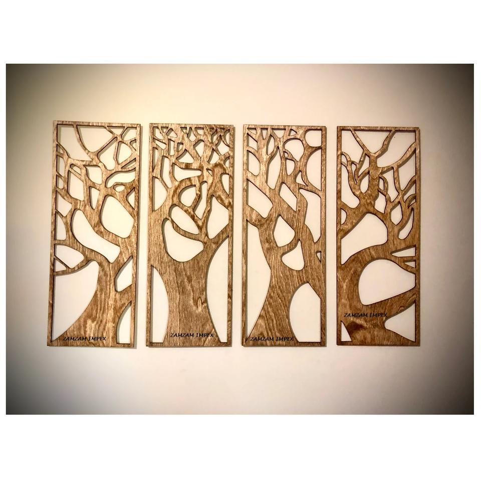 Handcrafted Wooden Tree Wall Decor Art 4 Panel Rustic Nature-Inspired Wall Hanging for Living Room, Bedroom, Interior Decoration