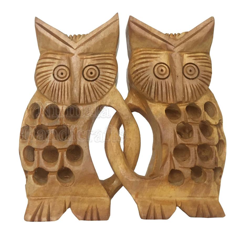 รูปปั้นนกฮูกคู่ทำมือจากไม้ พร้อมงานแกะสลักลายจาลีอย่างประณีต เหมาะสำหรับตกแต่งบ้าน สำนักงาน และเป็นของขวัญ