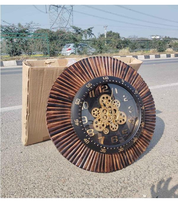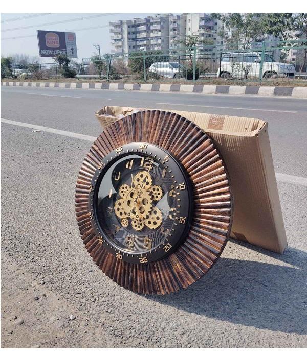 นาฬิกาแขวนผนังไม้ทำมือ ดีไซน์เกียร์หมุนแบบย้อนยุค นาฬิกาแขวนผนังตกแต่งสไตล์วินเทจ สำหรับตกแต่งบ้าน สำนักงาน ร้านกาแฟ