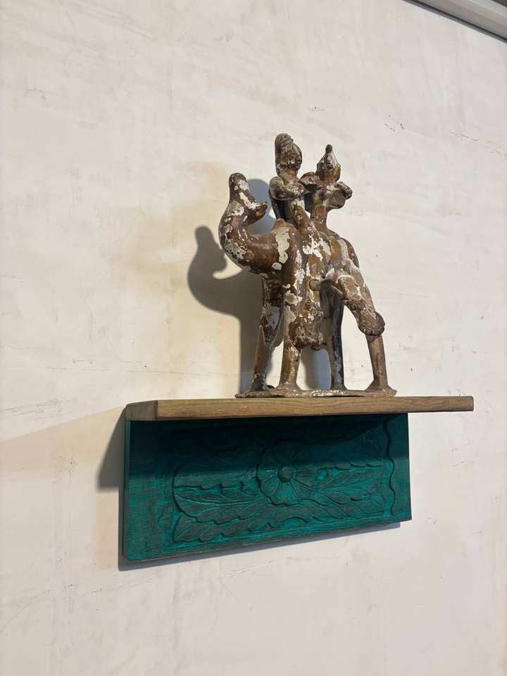 ชั้นวางของติดผนังไม้ทำมือพร้อมลายแกะสลักดอกไม้ | ชั้นวางของติดผนังสไตล์วินเทจแบบเรียบง่าย